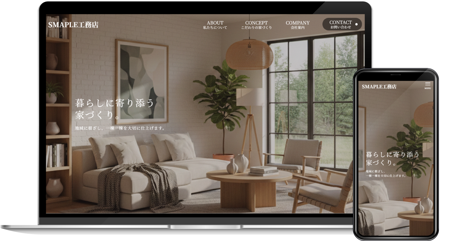パソコン・タブレット・スマートフォンで見やすいように変化する、レスポンシブデザインで行います。